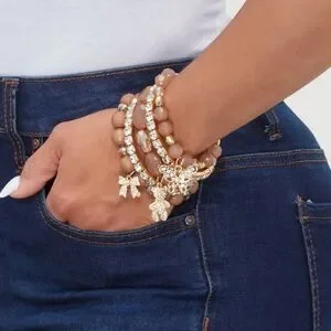 Enhance your style with this elegant charm bracelet set. Featuring a blend of gold and brown tones, this set adds a touch of sophistication to any outfit. Perfect for any occasion.