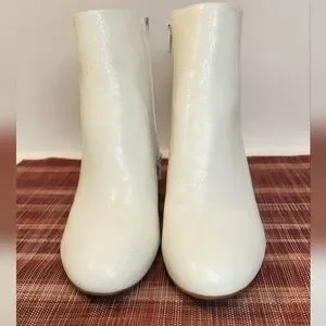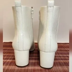 Gianni Bini Jaydennn White Ankle Embossed Leather Heeled Ankle Booties Size 7.5
