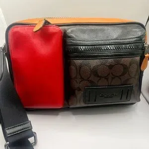 COACH **Unique** Men's Color Block Leather Travel Bag * Multi-Compartment. XLNT