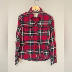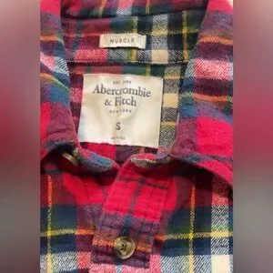 Abercrombie & Fitch Flannel Muscle Shirt Mens Small Plaid Red Thick Button Up