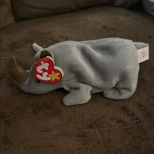 Charming Ty plush toys featuring a blue bird, gray rhino, and cream lamb. Perfect for collectors and pet play.