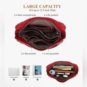 ♥️Interior: 3 compartments with 2 slip pockets and a zip pocket on one side. Other side also has a zip pocket.