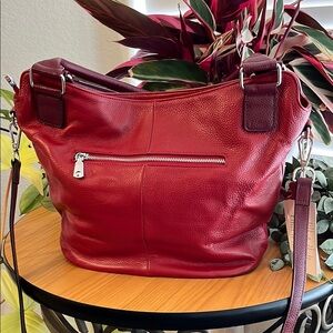 This stylish crossbody / shoulder bag in a vibrant red hue features a slouchy design and adjustable strap for versatile wear. Crafted from high-quality materials, it offers a roomy interior perfect for everyday use.