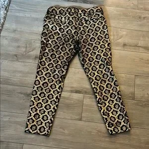 Step into style with Old Navy's black and gold straight leg pants featuring a captivating geometric pattern. This eye-catching piece combines modern design with classic comfort, making it perfect for any occasion. The bold color contrast and sleek silhouette ensure you make a lasting impression. They are in EUC with no damage. They have a zipper and button closure as well as belt loops. There’s a lot of stretch to the fabric. I used to wear it to work with a plain black shirt and black flats, just to tone it down a bit. Then after work I wore a sheer top and black heels. Really versatile and you will have people’s attention when you walk into the room. Feel free to ask questions and make offers. Or bundle two or more items from my closet for a great private offer. Don’t like my offer? No worries, send a counter offer. Most are accepted AND every purchase comes with a free mystery gift 🎁 😍🎉🛍️ Sound to good to be true? Check out my ratings!!