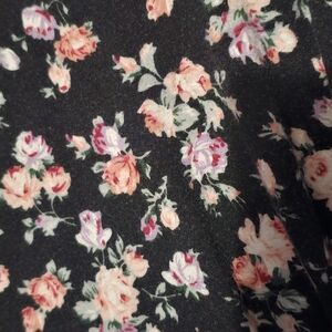 Elegant black top with pink and white floral pattern. Features a waist for a flattering fit.