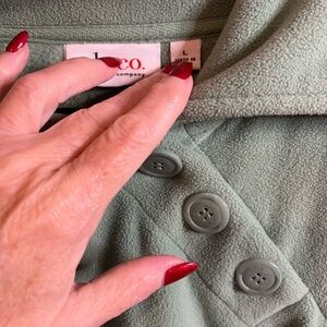 Embrace a unique style with this green hoodie featuring an asymmetrical design and a charming sailor collar. The buttoned details add a touch of sophistication, making it perfect for both casual and polished looks. Crafted for comfort, this top is ideal for layering or wearing on its own.