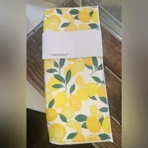 Keep your kitchen fresh with the help of this Lemons Drying Mat. This fruity mat can be placed under your dish drying rack, or act as a cushion to protect your dinnerware and countertops. It features a white base and is decorated with bright lemons growing from leafy sprigs. The back is lined with beaded dots to help prevent it from sliding against your surfaces. When you're done, fold it up and store it away for next time!