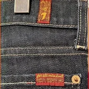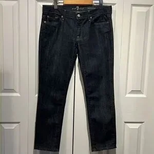 7 For All Mankind jeans featuring: 5 pocket style Zipper fly and button closure “Roxanne” style Ankle length Size 31 Excellent used condition Measurements laying flat: Waist- 16.5” Front rise- 8.5” Back rise- 13” Inseam- 28