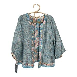Democracy Plus Size Paisley Print 3/4 Sleeve Reversible Open-Front Jacket NEW