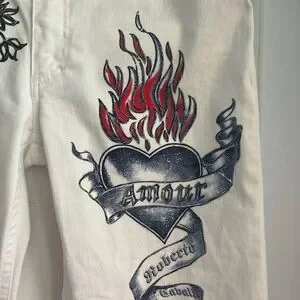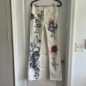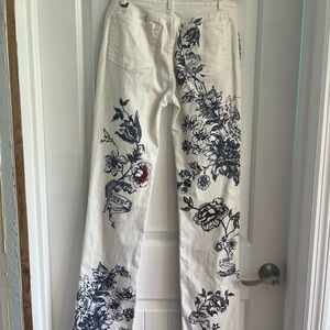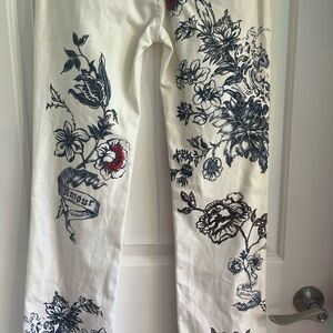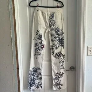 ONE OF A KIND! Elegant white jeans with a signature gold button. Perfect for a chic look.