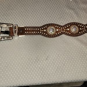 New from my western store stock. This belt is made to wear over a sweater, shirt. etc. It does not fit in belt loops.