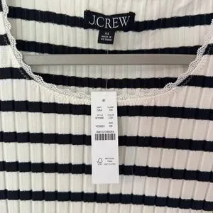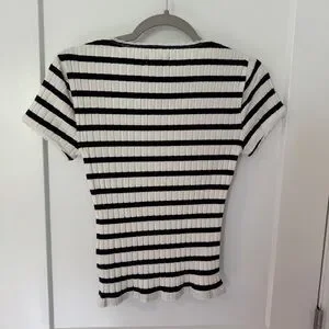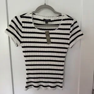 The short sleeves and ribbed, fitted style ensure a comfortable and flattering fit, making it a versatile addition to any casual wardrobe. Very dark navy, almost black stripe. NWT! Bundle in my closet for a discount!