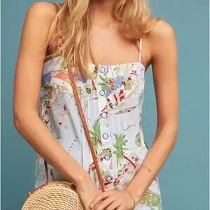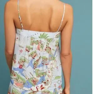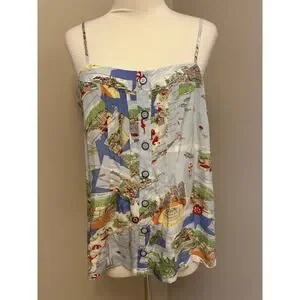 Maeve Anthropologie 100% Silk Souvenir Cami Blue Motif Sz 12