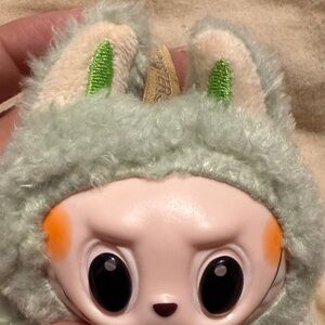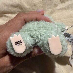 Adorable green plush monster keychain, perfect for small pets or as a cute accessory. Soft and cuddly design.