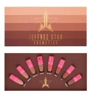 Explore the Jeffree Star Lipstick Collection, showcasing a stunning array of pink and brown shades. This collection offers a variety of finishes, from creamy to matte and metallic, ensuring a perfect match for any look. Each lipstick is housed in chic pink packaging, making it a stylish addition to your makeup routine.