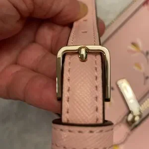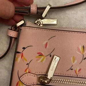 Kate Spade NWOT Pink coated leather Crossbody with delicate flowers. 9.5x9.5x1.5 & 23” Adjustable strap. Clean inside & out, not used. Gold Hardware scratch free. 2 pockets inside & 1 zip pocket on front. Great for daily use please see pics for condition.