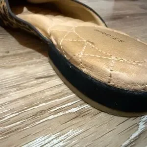 Birdies Tan and Black Mules with Leopard Print