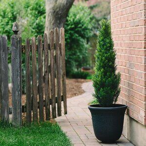 Outdoor Artificial Topiary Trees in Black Planter: Perfect as front porch plants, these topiaries complement any decor. Designed to fill empty spaces, place our artificial cedar trees outdoors.