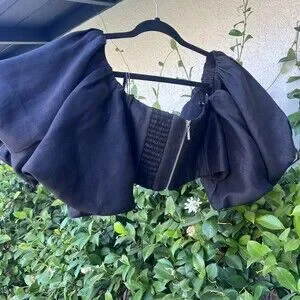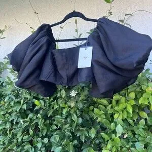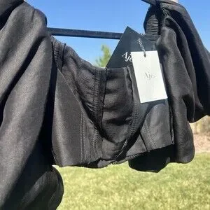Aje Eugene Off The Shoulder Crop Top Black Puff Sleeves Size 16 US 12 Large NWT