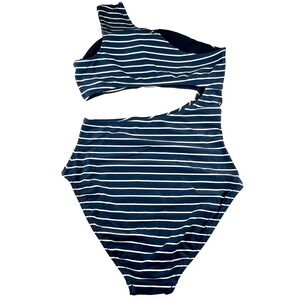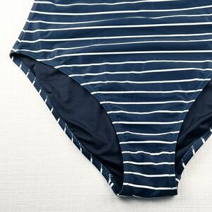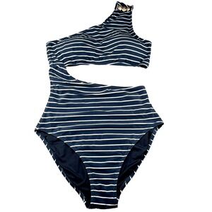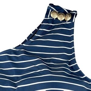 J.Crew Cutout One Piece Full Coverage Swimsuit w Buttons Navy Stripe Sz 14L $138