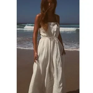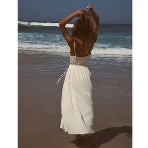 Elegant white midi dress. Features a relaxed fit. Perfect for beach outings.