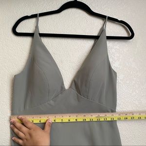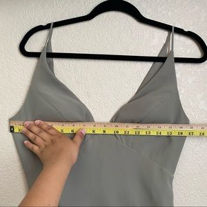 The Jude chiffon slip bridesmaid dress has an elongating empire waist seam, notched neckline and body skimming bias cut skirt. The slim silhouette also makes this style a natural to mix and match with other fabrications.