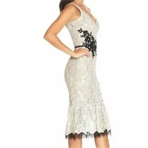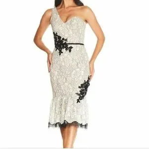 Dress the Population One-Shoulder Floral Dress in Black and Cream