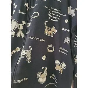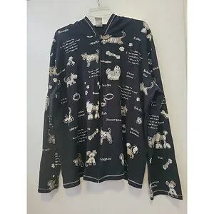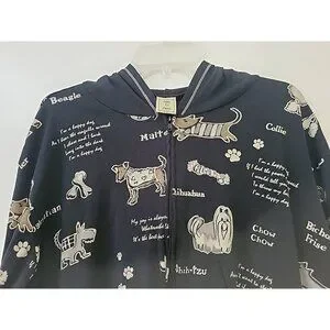 The Jess and Jane Dog Town Hooded Sweatshirt is a stylish and comfortable piece perfect for all seasons. Featuring a full zip closure and high neckline, this black sweatshirt in size 3X is adorned with rhinestone accents and a playful dog theme. The hooded design adds an extra element of functionality, making it a great choice for winter, summer, fall, and spring activities like walking.This sweatshirt is a super cute addition to any woman's wardrobe. Chest measures 54" Length 28".