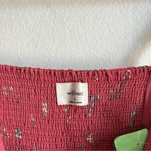 Elegant Aritzia midi dress with floral print. Features a navy base with colorful floral accents. Perfect for any occasion.