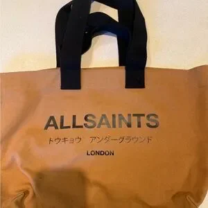 All Saints Black and Tan Canvas Tote Bag