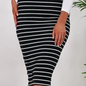 Isaac Mizrahi Size Large Stretch Black/White Striped Pencil Skirt W/Pockets.