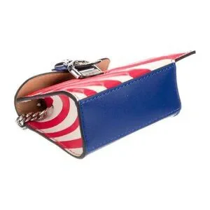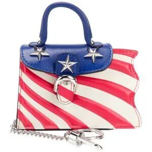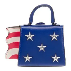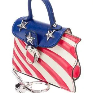 This Les Miniatures “America” bag charm is part of Delvaux’s collectible mini handbag series—a whimsical yet meticulously detailed tribute to iconic destinations around the world. Featuring a bold American flag motif in red, white, and blue leather with silver-tone star studs and hardware, this petite charm is both patriotic and fashion-forward.