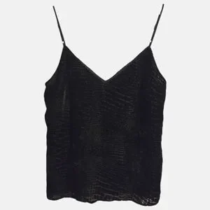 FRAME Cami Tank Top Women's Medium Black Straps Velvet Burnout Croc Witchy