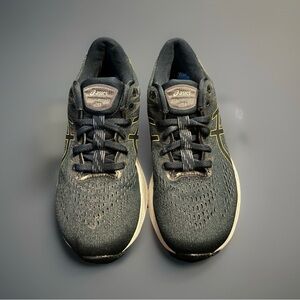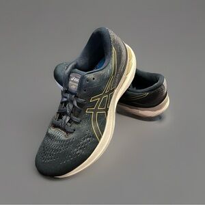 Step up your performance with ASICS athletic shoes, featuring a sleek black and gold design. The breathable mesh upper ensures comfort during intense workouts, while the traditional lacing system offers a secure fit. Perfect for athletes seeking style and functionality in their footwear. These are in good condition. Seller note the insole has been replaced.