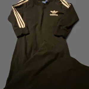 Women's size 8 black adidas form fitting maxi dress with white adidas stripes down the sleeves (the picture makes the stripes look yellow but they are white)