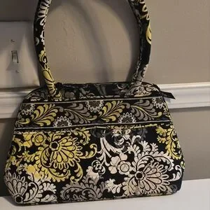 Beautiful stylish Vera Bradley black and yellow quilted tote bag.