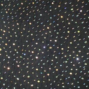 Black fishnet with light catching embellishments. IRL the colors range from silver to pink, blue, and green embellishments. In photos it is difficult to capture the colors and looks more like silver sparkle.