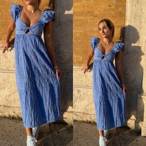 Universal Thread Blue Fluttered Ruffle Sleeve Twist Front Cutout Open Back Midi Maxi Dress