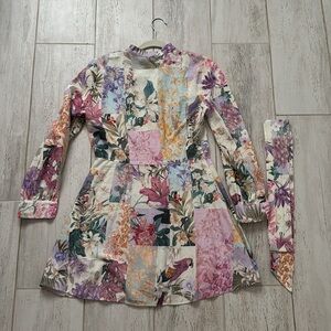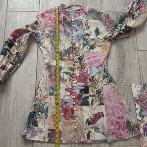Zara Floral Parrot Button Up Belted Mini Linen Dress