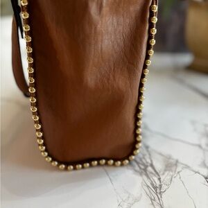Discover the elegance of the Jessica Simpson satchel, crafted in rich brown leather with luxurious gold accents. This structured bag combines timeless style with modern functionality, making it a versatile addition to any wardrobe. The high-quality leather and polished finish ensure durability and a sophisticated look for any occasion.
