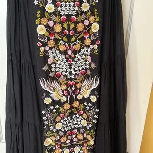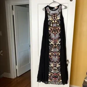 EUC Anthropologie Samant Chauhan Black Embroidered Maxi Dress Floral Gorgeous!