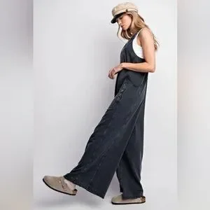 Easel NWT Mineral-Washed Terry Sweat Blue Boho Romper SZ L