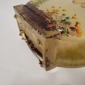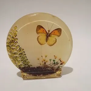 Pre-owned vintage Mid-century modern napkin or letter holder with a beautiful butterfly and floral design.