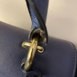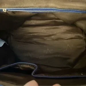 Also referred to as Versace 1969. Nice large satchel style. Zip pockets front & back, zip pocket inside & two open pockets. Gold-tone hardware. Bag is made of man made materials.