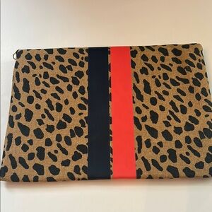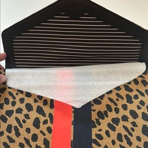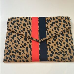 Stella & Dot Bellamy animal dot clutch. Tan with animal print, navy & red detail. Magnetic closure. Doesn’t come with a chain, that was sold separately as an option. There are areas to attach a chain if you want. New, never used. Been kept in Stella & dot plastic bag.