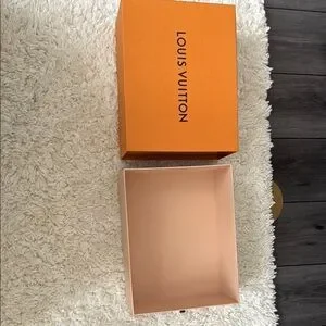 Bold orange box with iconic Louis Vuitton logo. Ideal for gifting or display.