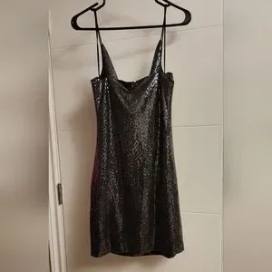 Garage Silver Sequin Mini Dress Cowl Neck Sleeveless