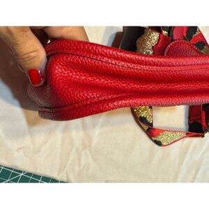 Red Pebbled Leather Crossbody Bag With Gold & Camouflage Adjustable Strap