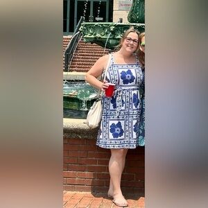 Chic women’s dress by Draper James RSVP size XL. Features navy and cream hues. Ideal for versatile styling. Floral print embroidered-look, smocked back, lightweight, like new!