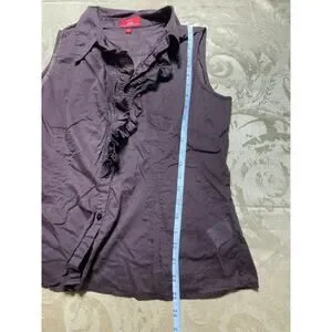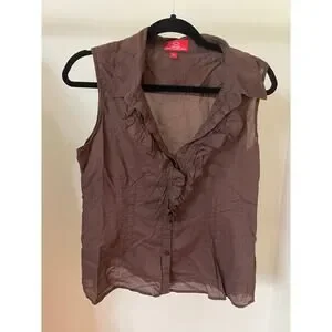 Oscar Oscar De La Renta Company Large Blouse Brown Sleeveless Ruffled Button Up